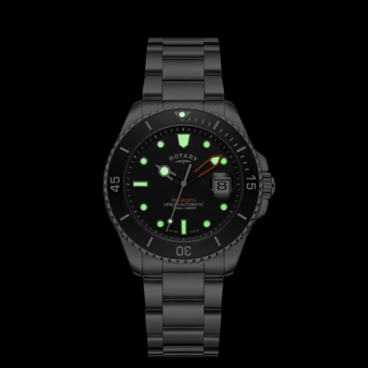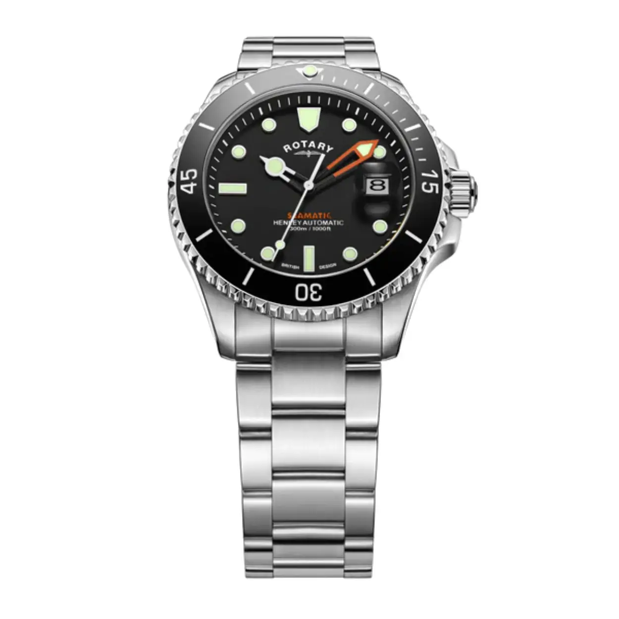 This Seamatic divers watch is a stunning display of clean design with impressive specification. Featuring a 316L stainless steel case, 3 link bracelet and Divers Z clasp for optimised security, this is a stylish addition to the wrist. The black dial, which displays luminous applied indices of varying shapes, also hosts open hour-minute hands with striking orange detailing, all protected beneath sapphire glass which has a cyclops magnifier over the date window.