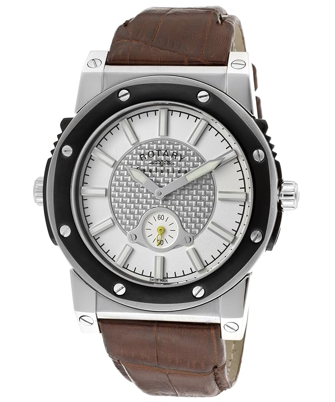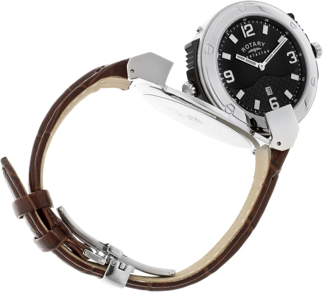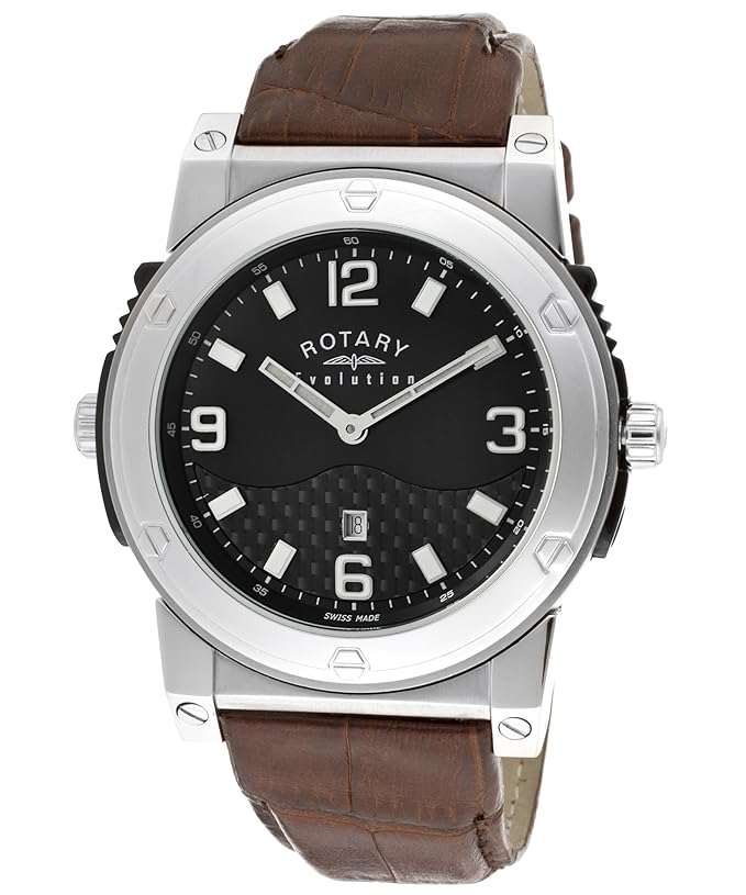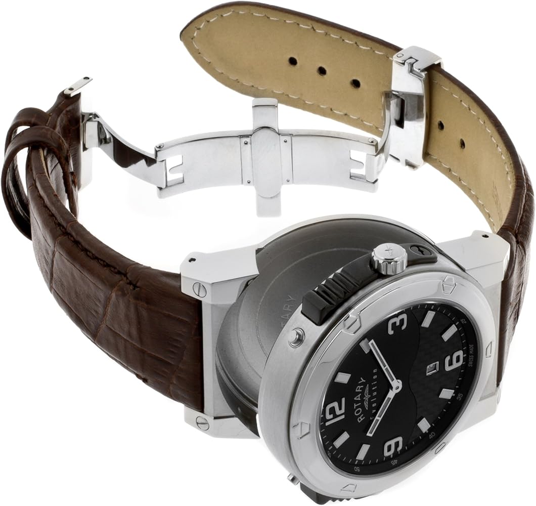 Men's innovative swiss made stainless steel reversible Revolution leather strap watch containing two movements with a striking silver dial and sophisticated black dial, finished with sapphire glass"