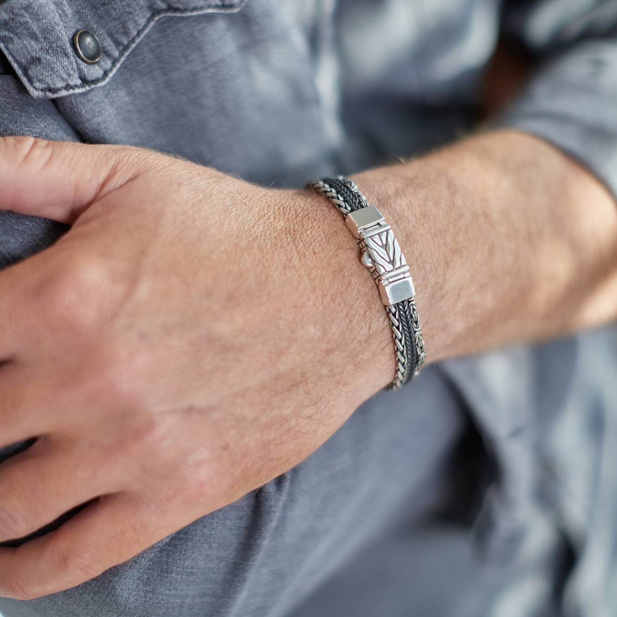 Deze 283 RAW edition armband bevat géén messing. Deze armband bestaat in zijn geheel uit 925 sterling zilver, waarbij één streng gepolijst is, één streng mat gemaakt is met een speciale borstel techniek en één streng bedekt is met zwart oxide. Deze armband heeft daardoor een rauw gedragen uiterlijk. Het zwart is "made to fade", wat betekend dat het zal krassen en vervagen op een manier die je eigen verhaal verteld. Juist deze RAW worn-style look is wat deze armbanden zo uniek maakt!