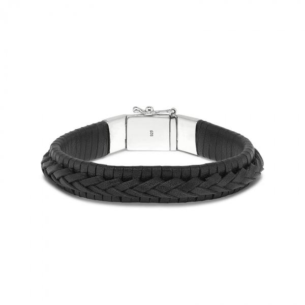 Super mooie Balinees gevlochten stoere zwart lederen armband. De armband sluit met de bekende baksloten van SILK