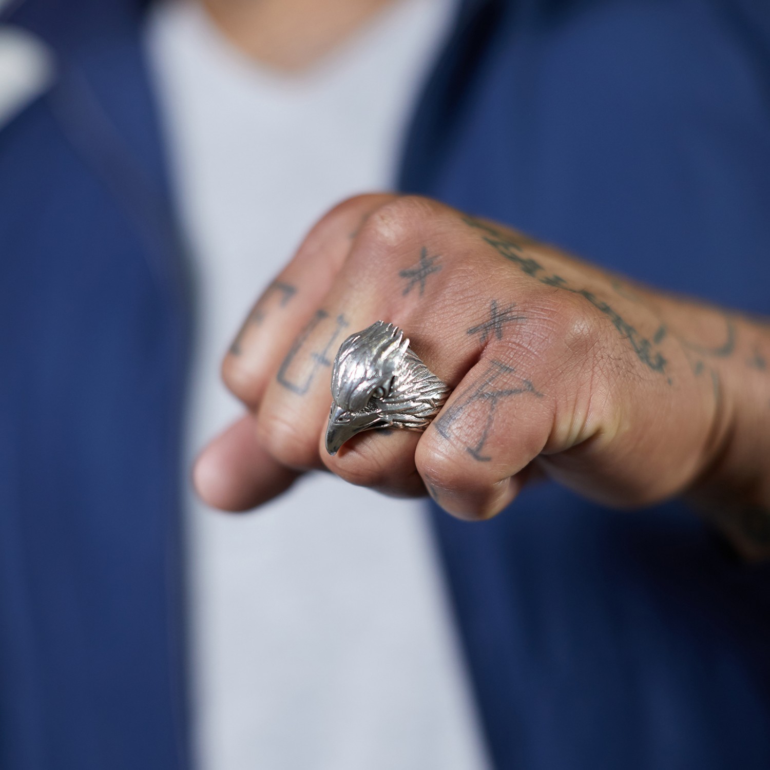 Deze zeer bijzondere adelaars ring is een echte eyecatcher voor stoere dames en heren. De ring is handgemaakt van sterling zilver en heeft een gedetailleerde adelaarskop. De snavel van de adelaar steekt scherp uit om de ring een fierce look te geven. Met deze ring kan je een perfecte statement maken in een basic outfit. Houdt de rest van je outfit rustig zodat deze ring lekker opvalt. De ring wordt verpakt in een luxe geschenkverpakking.