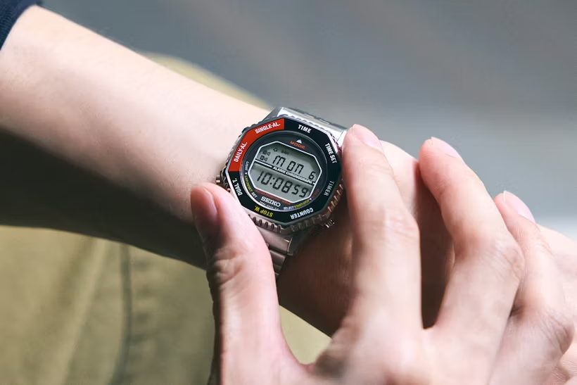 Seiko heeft een nieuw digitaal horloge gelanceerd waarbij de bezel centraal staat. Je draait eraan om de digitale functie te kiezen, waarmee je kunt schakelen tussen een dual-time weergave, een alarm, een stopwatch, een teller, een timer en natuurlijk tijdsinstelling. Supercool, en raad eens? We hebben het al eerder gezien. Dit is in feite een heruitgave van een model uit begin jaren 80 - de Seiko A829 - dat mogelijk bijzonder in de smaak viel bij astronauten omdat – je raadt het al – de bezelfunctie bediend kon worden met (ruimtepak!) handschoenen aan, of gewoon door mensen die geen zin hadden om met kleine knopjes te spelen.