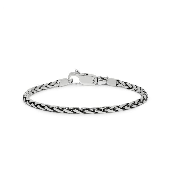 Dit smalle fijn gevlochten armbandje heeft een speels karabijnsluitinkje.