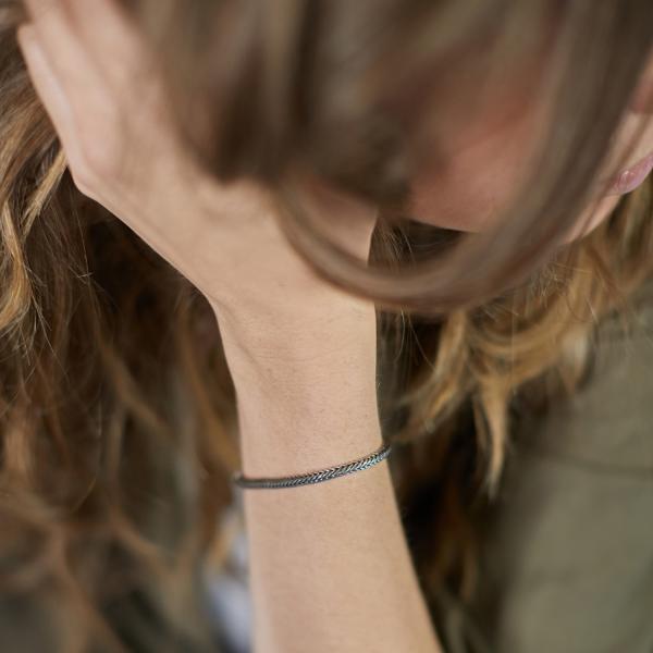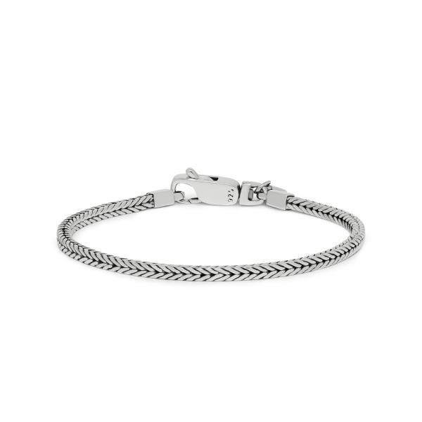Deze zilveren armband is met de hand gevlochten door de beste zilversmeden van Bali en Java. De verfijnde vierkante structuur maakt deze armband stoer en elegant tegelijk. De armband sluit middels een karabijnsluiting wat deze armband een speelse touch geeft.
