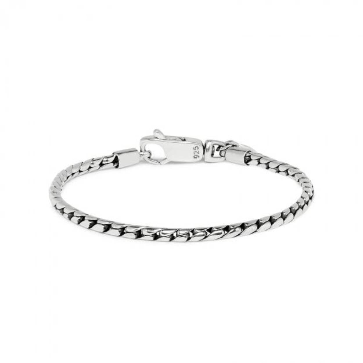 Dit zeer smalle fijn gevlochten armbandje heeft een speels karabijnsluitinkje.