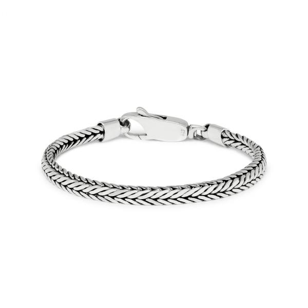 Zilveren Silk Jewellery armband, uit de Zipp collection, heeft een gevlochten ovale Balinese structuur en sluit met een karabijn haak sluiting. Combineer met je horloge of stapel een aantal armbandjes naast elkaar om je look meer body te geven.