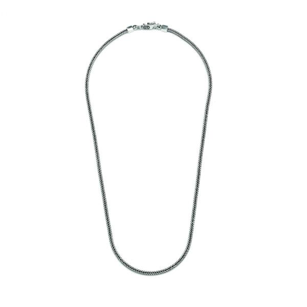 Deze zilveren ketting is met de hand gevlochten door de beste zilversmeden van Bali en Java. De verfijnde vierkante structuur maakt dit collier stoer en elegant tegelijk. Het collier sluit middels een karabijnsluiting wat deze ketting een speelse touch geeft. Met deze SILK ketting maak je je look helemaal af.