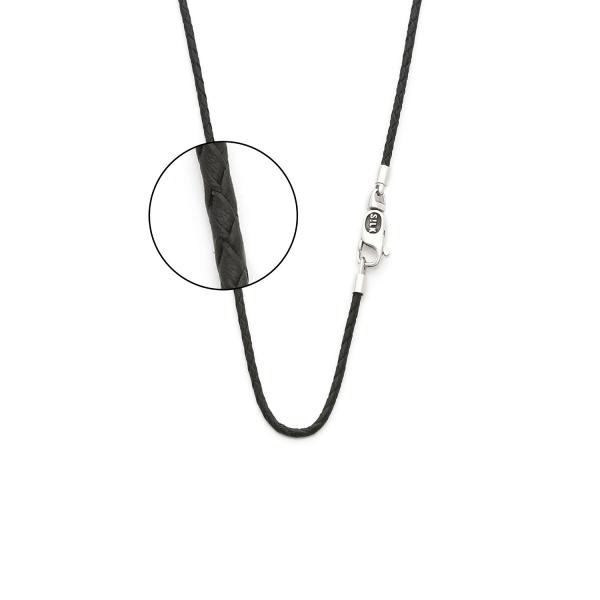 Deze zwart leren ketting met zilveren sluiting heeft een dikte van 2mm. Het leer is met de handgevlochten in een stevige doch soepele kwaliteit leer.