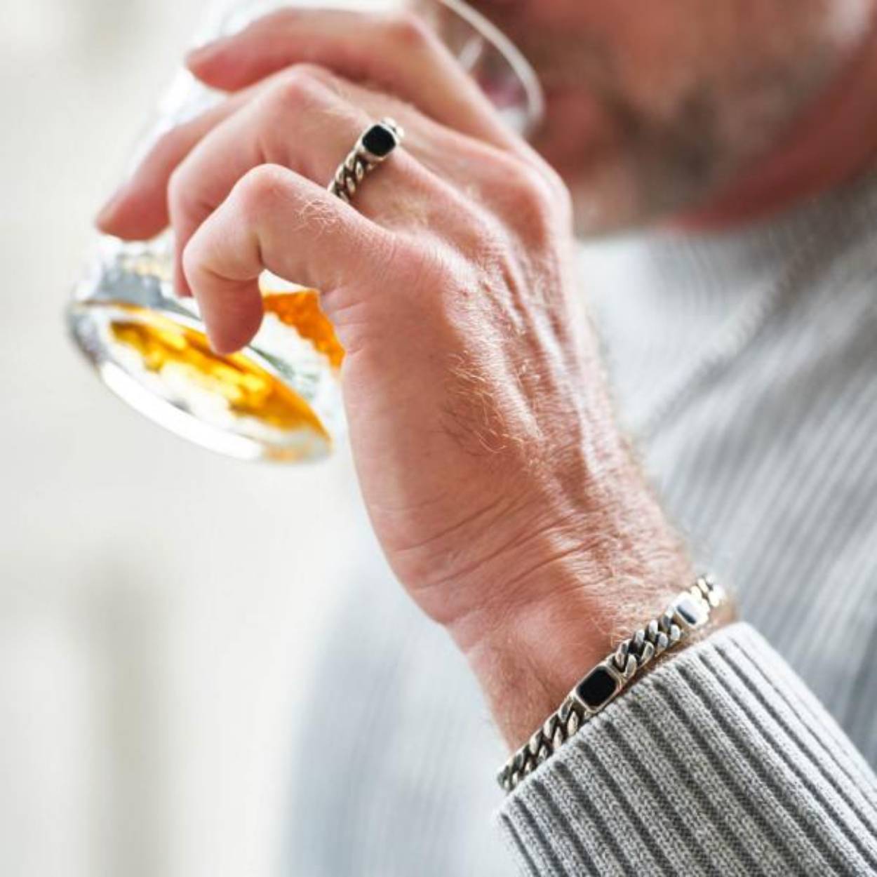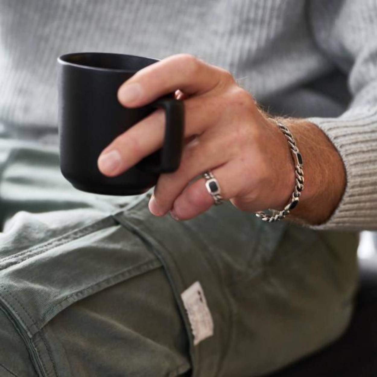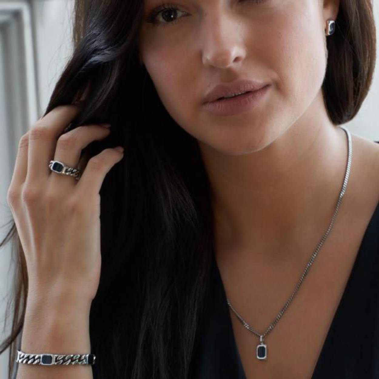 Zilveren ring in gourmet schakel met zegel met zwart resin