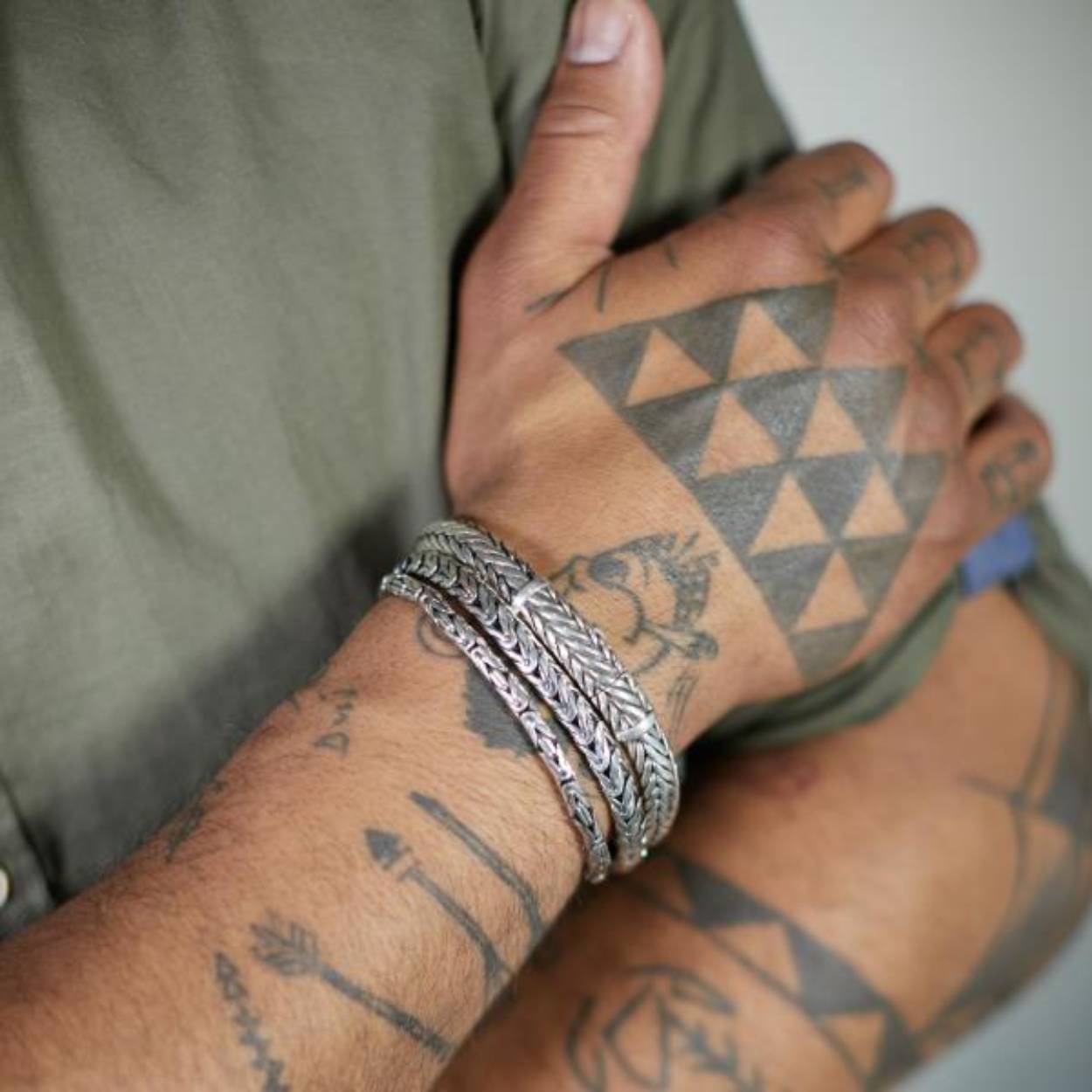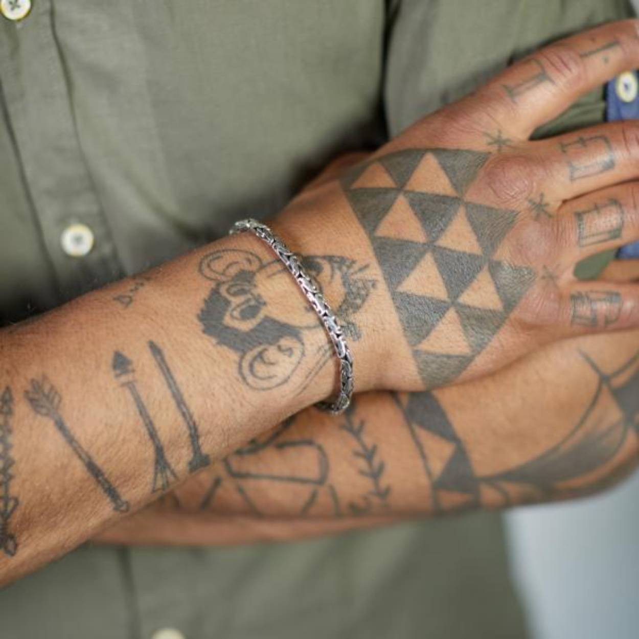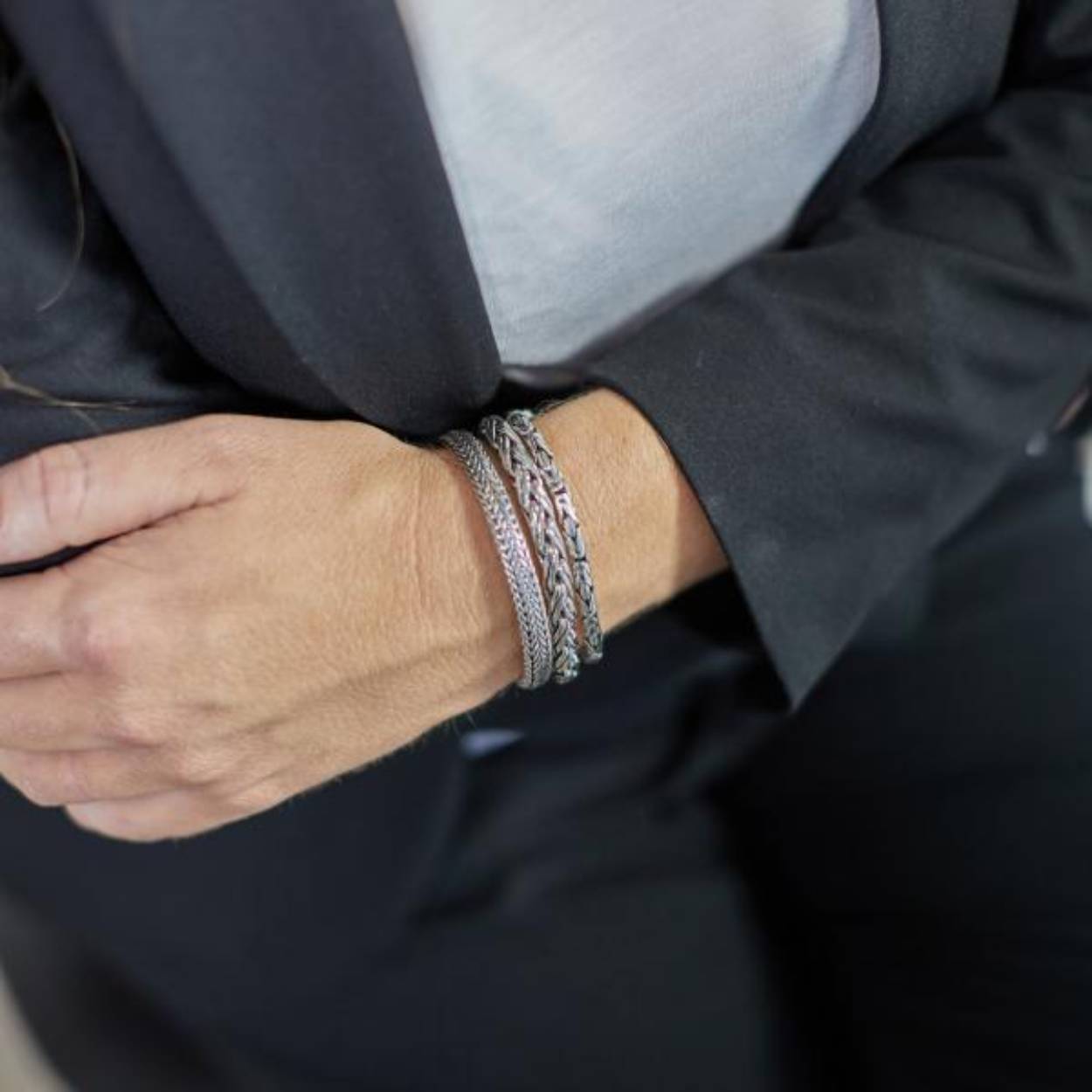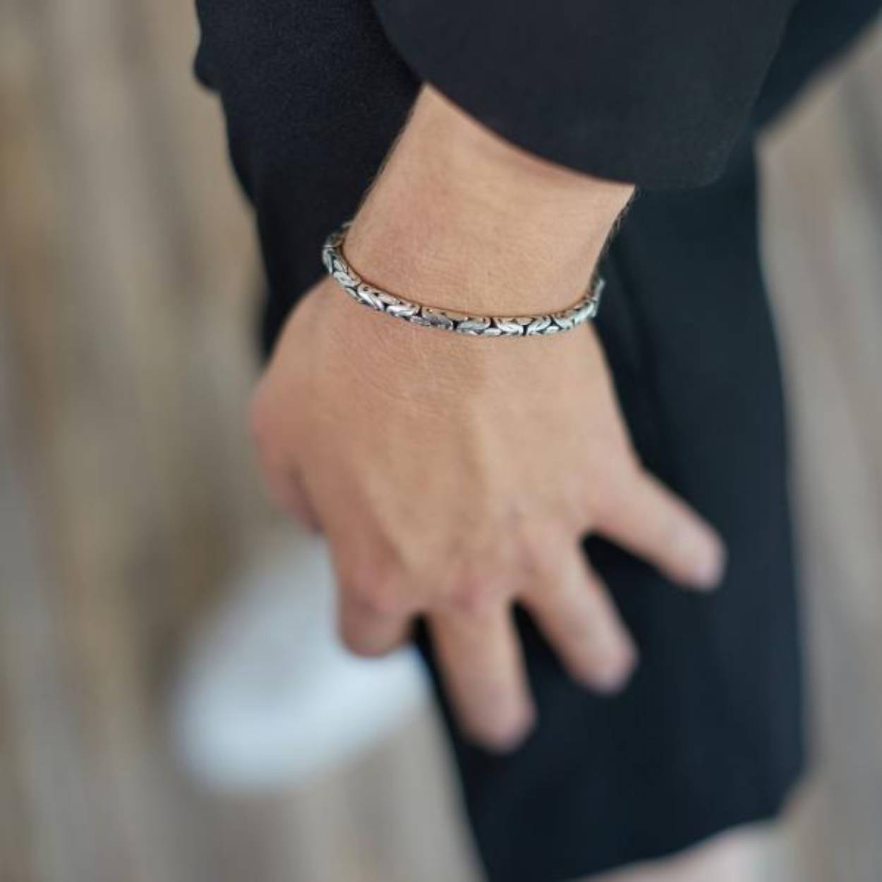 Deze koningsschakel is terug van weggeweest en nu bewerkt met een prachtige decoratieve draad. Deze armband is zowel voor stoere dames als heren. De armband combineert mooi met een leren band. De armband wordt in een mooie luxe geschenkverpakking verpakt.