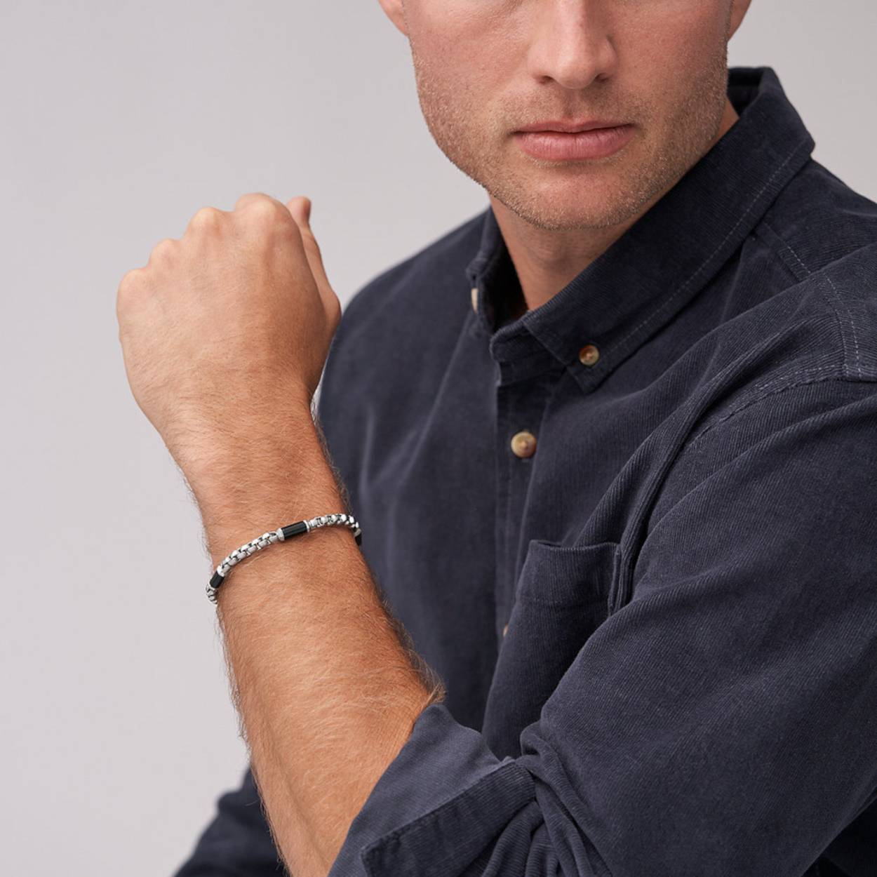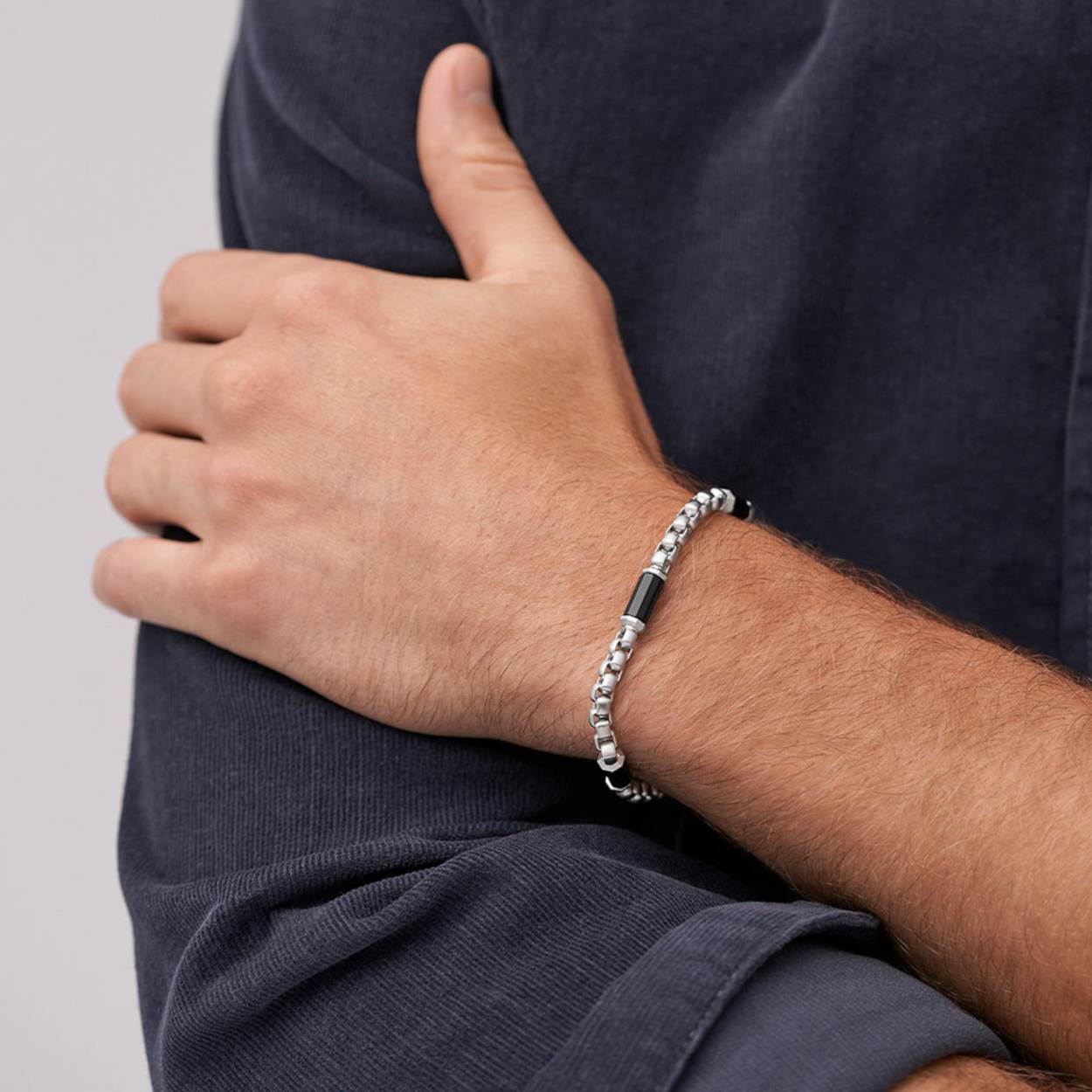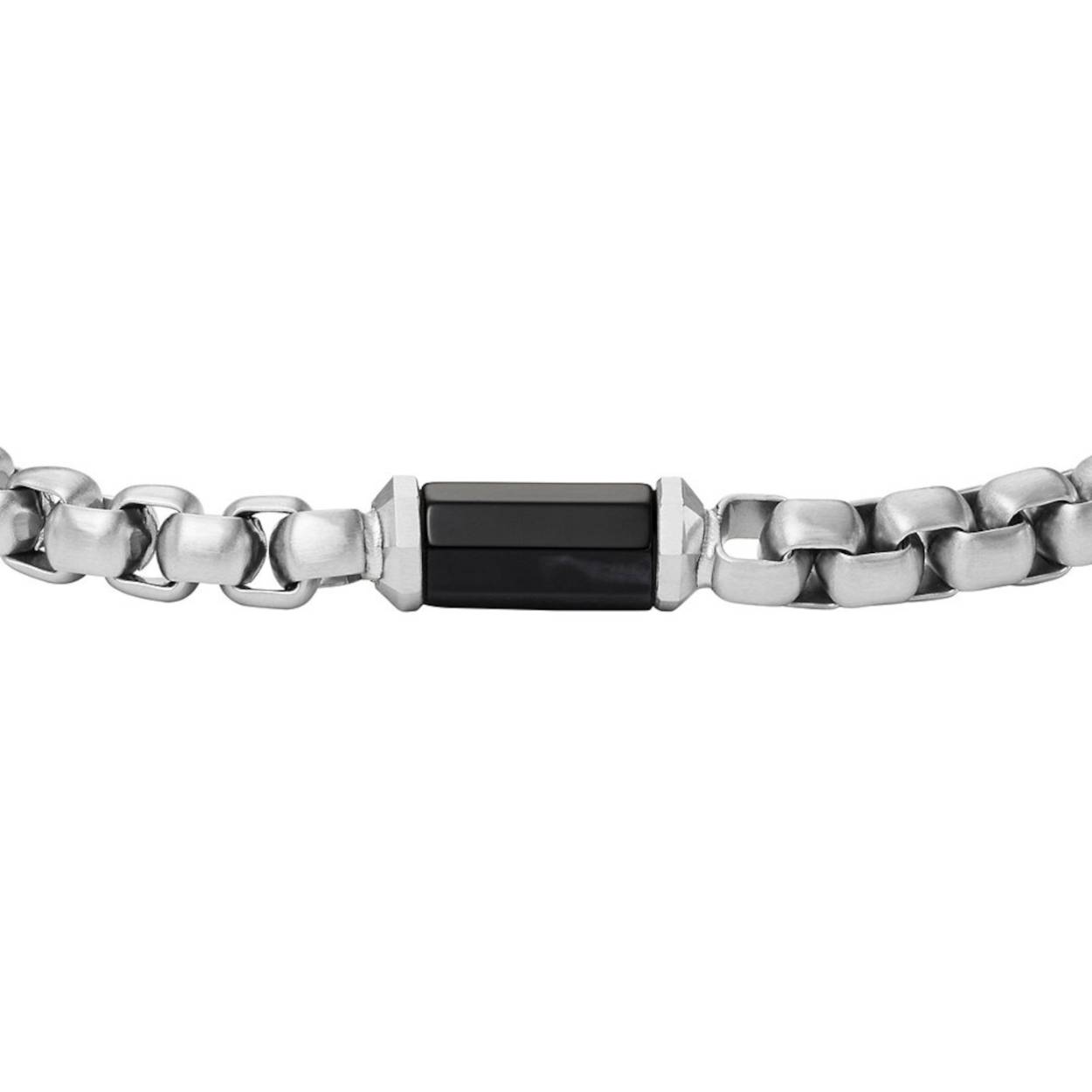Edelstalen Fossil armband met Onyx halfedelstenen de armband is  draagbaar tot een polsmaat van 19cm tot 21cm
