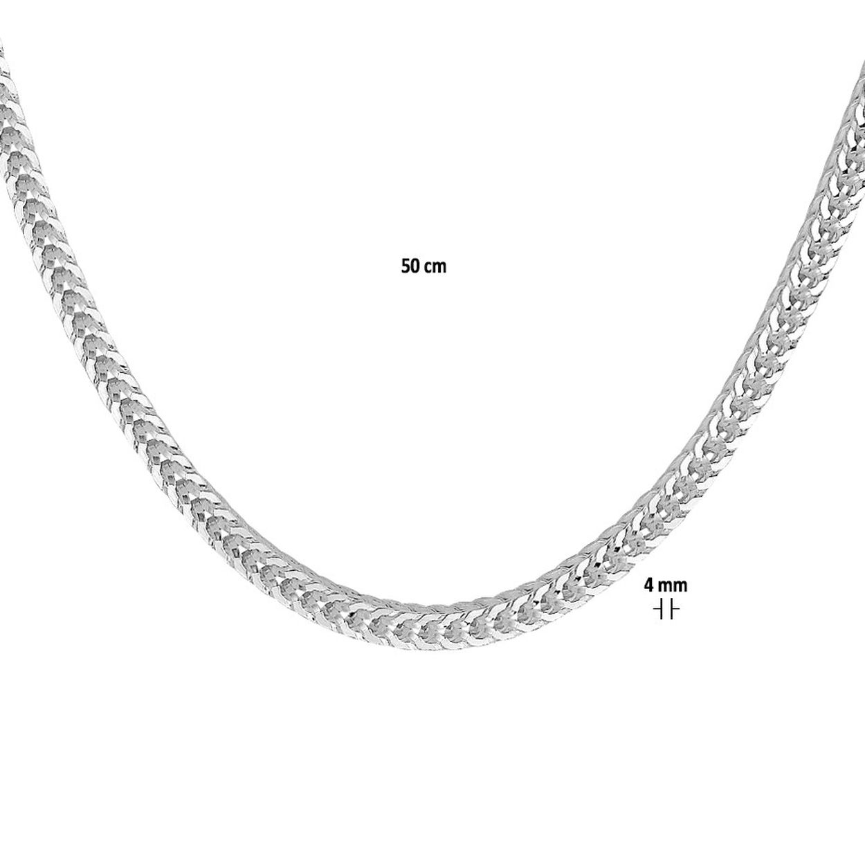 Zilveren Vossestaart collier in een vierkante afwerking met een stevig karabijnslot. Perfect om een zware hanger aan te hangen of gewoon als sieraad in een schakel die u niet regelmatig zult aantreffen in de basis collectie van Nederlandse juweliers.