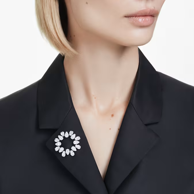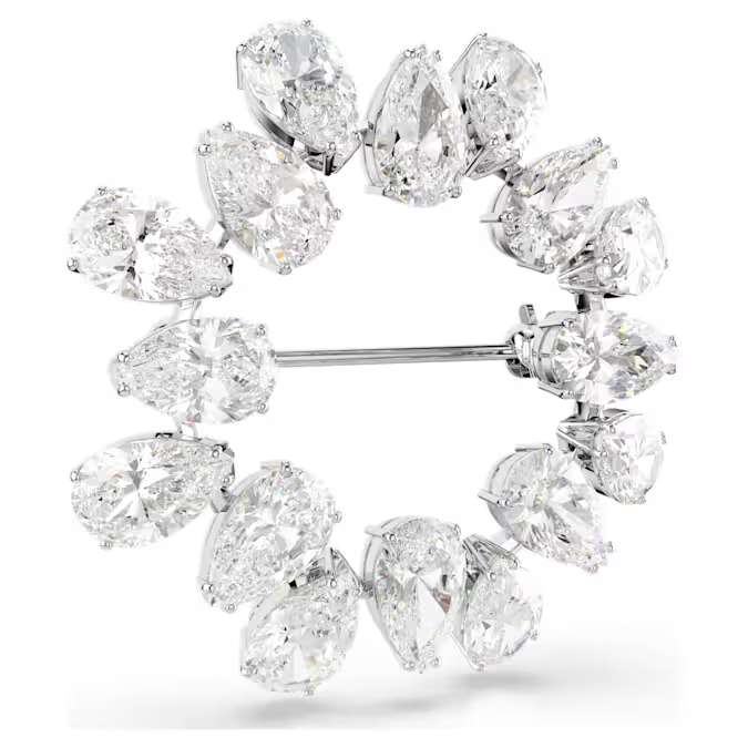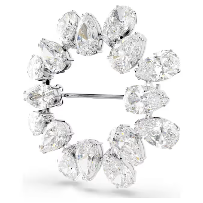 Deze stralende lichtkrans is de perfecte accessoire om uw stijl te doen oplichten. Het ontwerp met rhodium toplaag bestaat uit een cirkel van Swarovski Zirkonia in de Pear-slijpvorm, uitgevoerd in een heldere tint met afwisselende richtingen voor een prachtig effect. Draag het samen met andere Matrix-sieraden om de elegantie te accentueren.