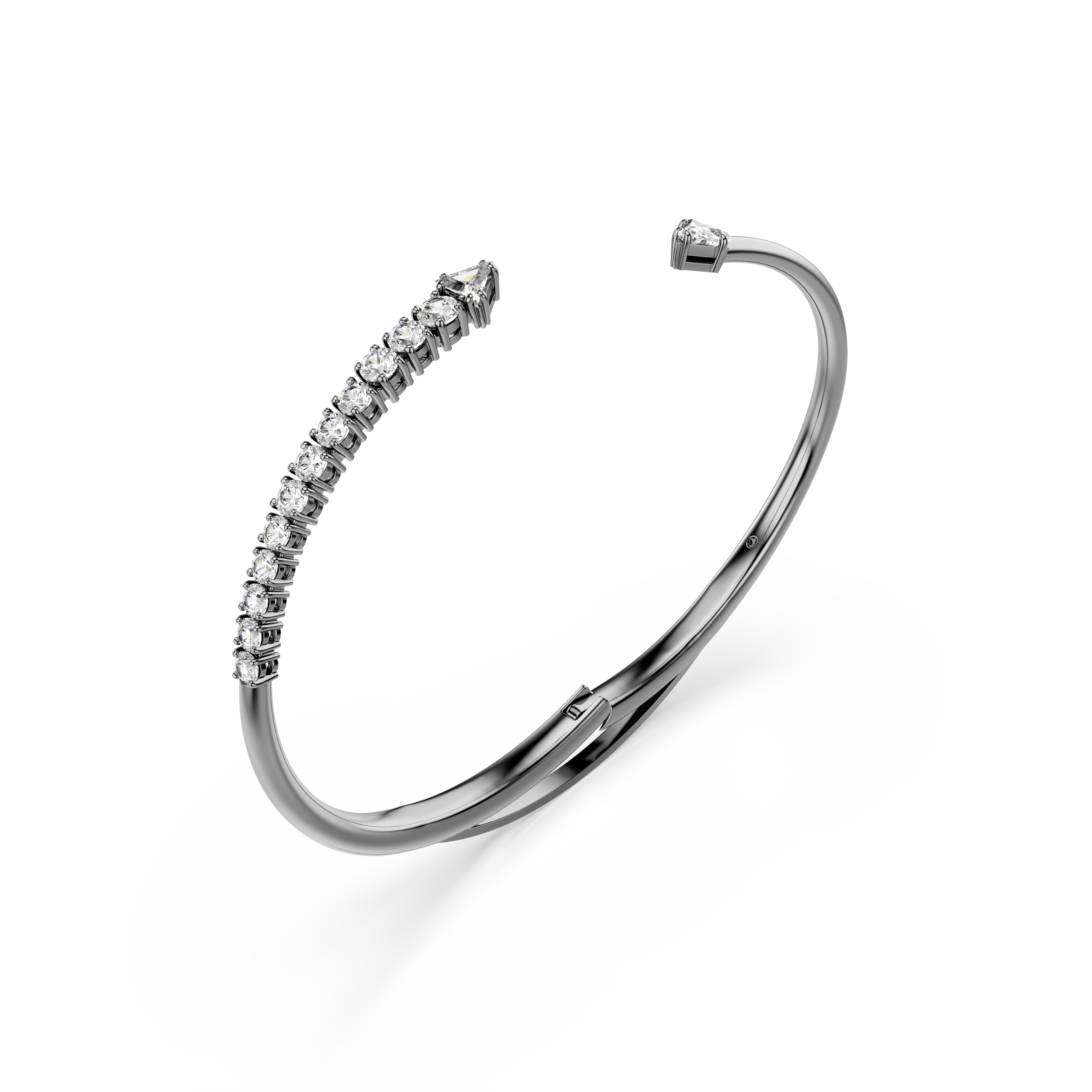 Laat uw alternatieve kant stralen met deze indrukwekkende Sublima-armband. De band met ruthenium toplaag is open en wikkelt zich als een spiraal om de pols met diverse heldere Swarovski Zirkonia in klauwzetting. De puntige uiteinden zorgen voor een eigentijdse afwerking en passen perfect bij andere sieraden uit dezelfde expressieve lijn.