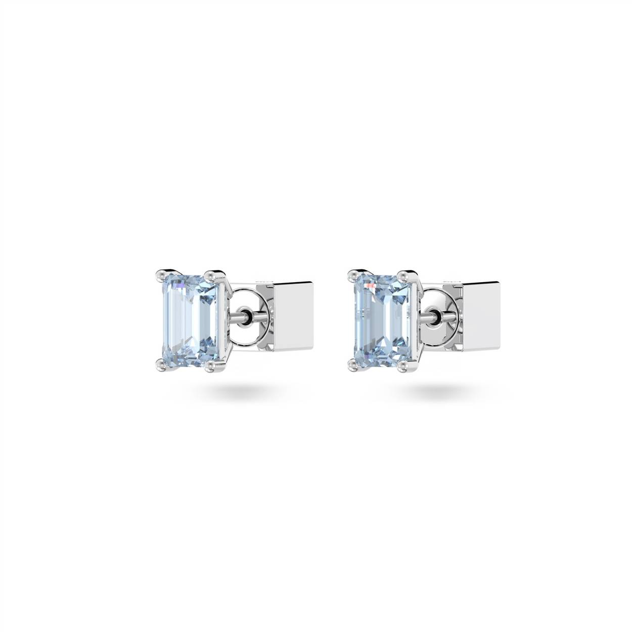 Deze oorknopjes zijn ontworpen om gecombineerd te worden met andere sieraden uit de Stilla-lijn en bieden eindeloze stylingmogelijkheden. Ze bevatten blauwe stenen met cushion-slijpvorm in zettingen met rodium toplaag, en het is aan u hoe u ze draagt.