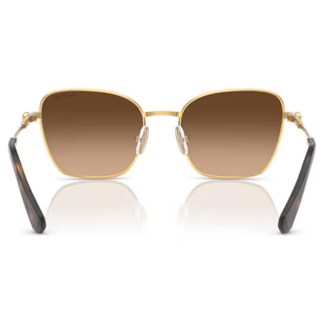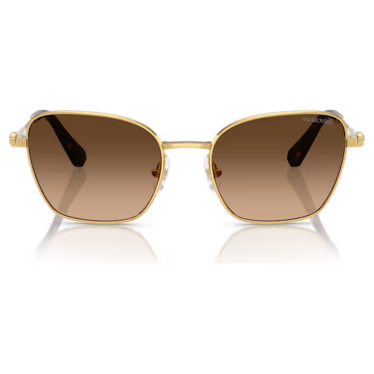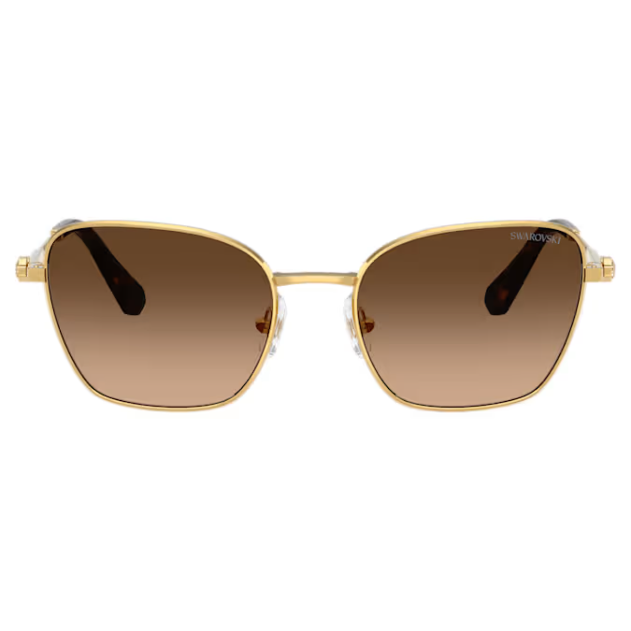 Deze Swarovski-zonnebril combineert klassieke elegantie met hoogwaardige glamour. De vierkante monturen zijn geïnspireerd op onze iconische Millenia-lijn en zijn gemaakt van goudkleurig metaal met bruine glazen met kleurverloop. Om de gouden gloed van het ontwerp te versterken, is op beide brilpoten een minikristal in Octagon-slijpvorm gezet. Style met casual chique ensembles om moeiteloos een eenvoudige maar toch elegante look te creëren.