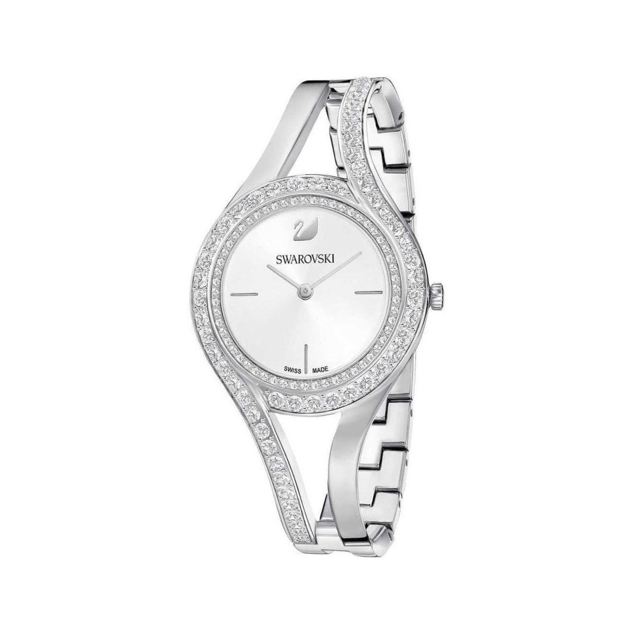 Upgrade je zomerstijl met dit vloeiende en moderne horloge. Met twee pavelijnen op de ring en asymmetrische uitsparingen is hij een nieuwe versie van klassieke sprankeling. De roestvrij stalen horlogekast en armband zijn een perfecte aanvulling op de 112 heldere kristallen en de witzilverkleurige sunray-wijzerplaat. Ongeacht de gelegenheid zal hij een eigentijds accent toevoegen aan tijdloze styling. De lengte van de armband kan eenvoudig worden aangepast. Specificaties: horlogekast - 30 mm; waterbestendig tot 50 m; Swiss made.