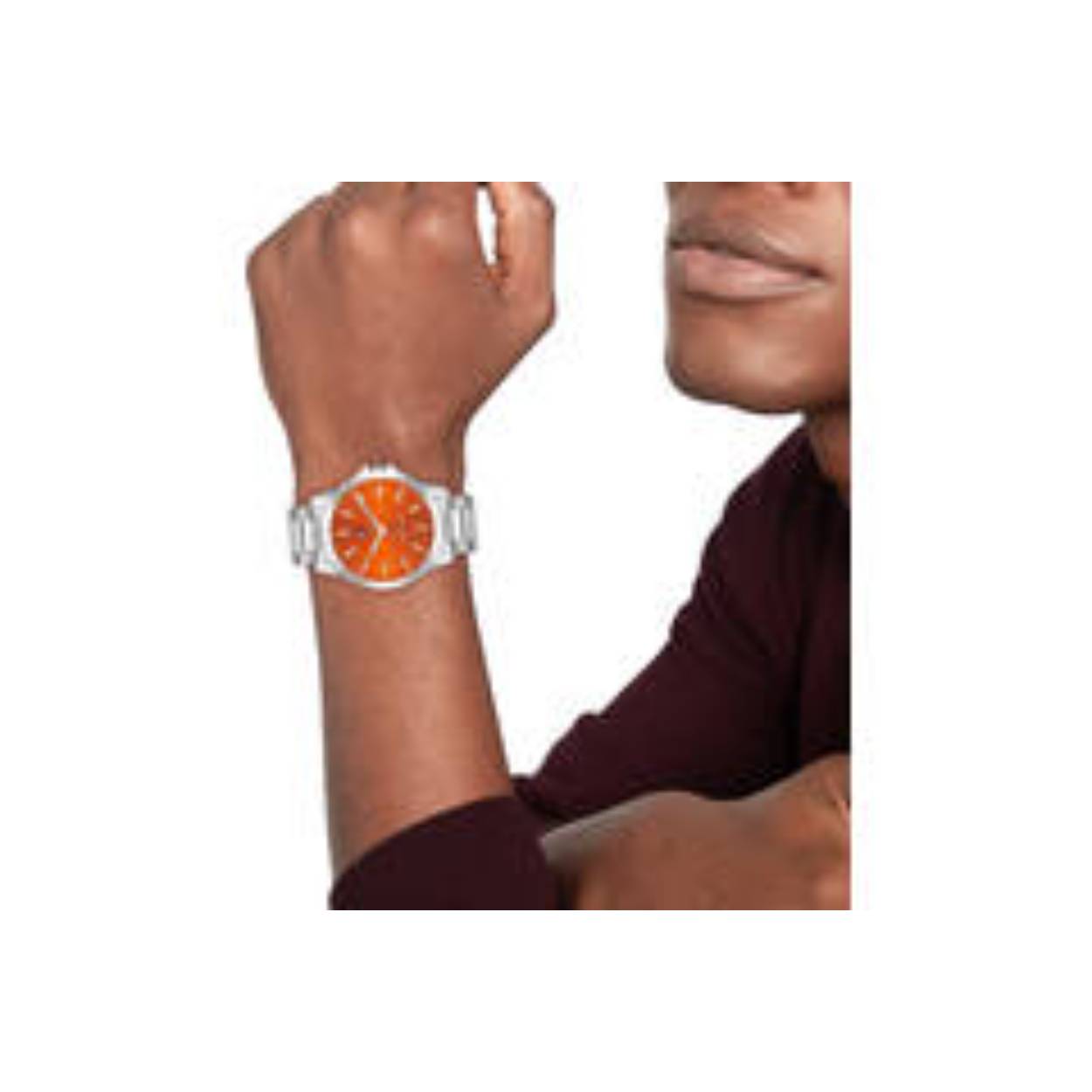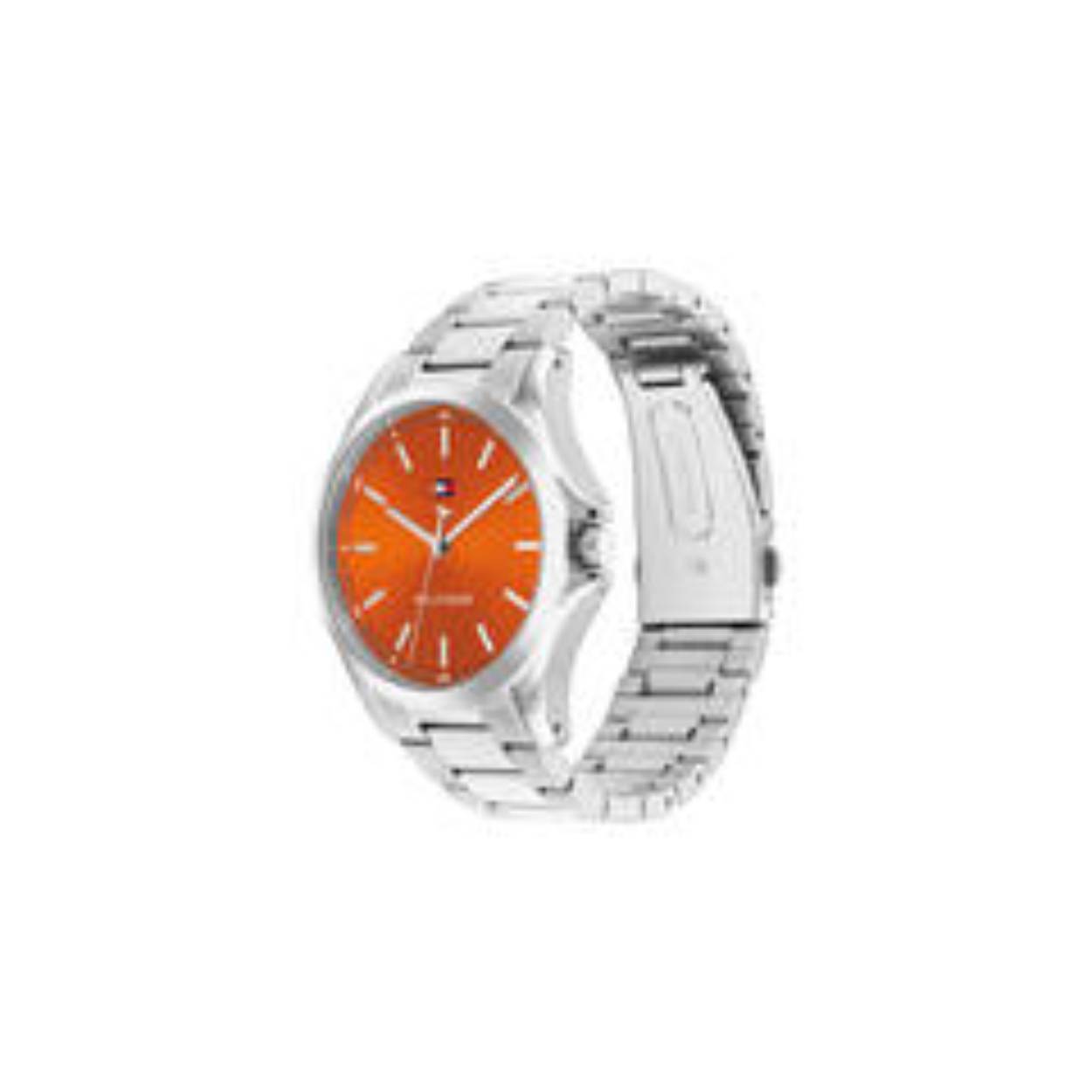 Dit specifieke horloge van Tommy Hilfiger uit de Bruce serie met artikelnr: TH1710678 is een sportief herenhorloge die niet in je collectie mag ontbreken. Het stalen herenhorloge heeft een zilverkleurige ronde kast met een gladde bezel en een oranje geborstelde sunray wijzerplaat. Aan het horloge zit een zilverkleurige schakelband met een vouwsluiting. Het horloge heeft een mineraalglas, een doorsnee van 43mm en is 3ATM.