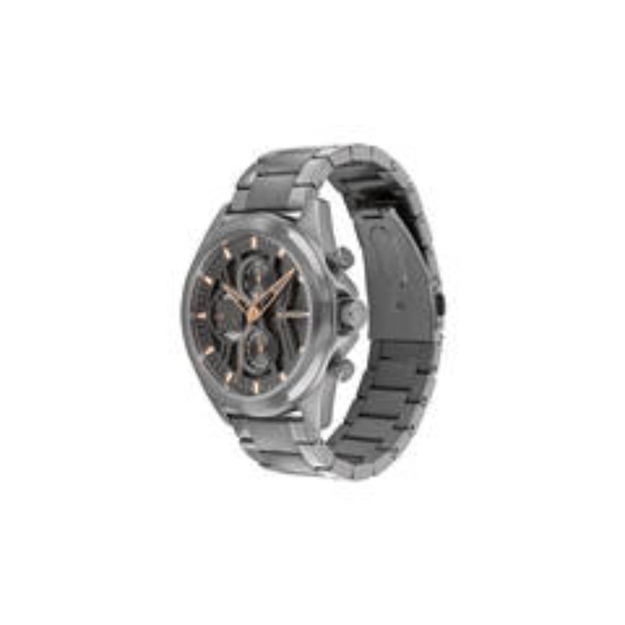 Dit Tommy Hilfiger horloge, uit de JAX collectie heeft een grijs gecoate stalen band en kast. De wijzerplaat is antraciet met roségoudkleurige indexen en wijzers. Het horloge is voorzien van van een dag, datum en 24-uurs aanduiding