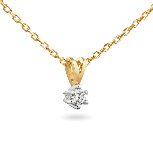 Met haar klassieke vormgeving en sprankelende diamant is deze ketting een ode aan tijdloze schoonheid. De briljant geslepen lab-grown diamant (0.15 ct) vangt het licht met elegante precisie, terwijl het gerecyclede 14 karaat goud zorgt voor een luxueuze, duurzame uitstraling. Een sieraad dat elke gelegenheid een verfijnd accent geeft.