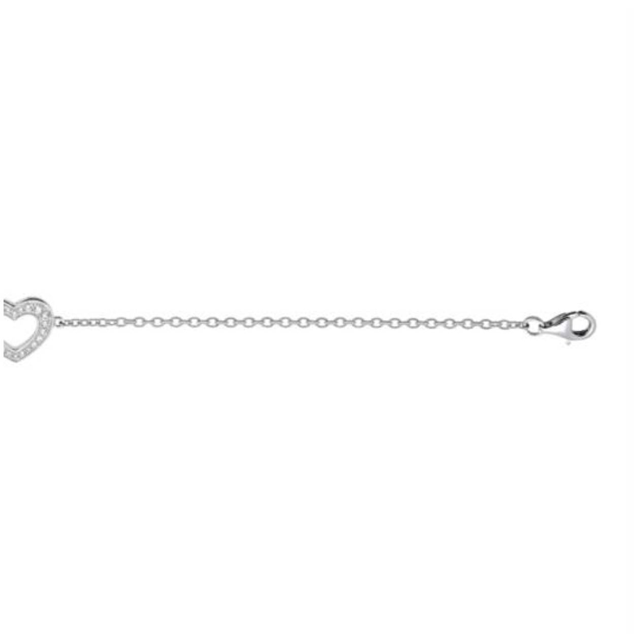 Zilveren armband, in anker schakel, met in het midden een open hart bezet met zirkonia's