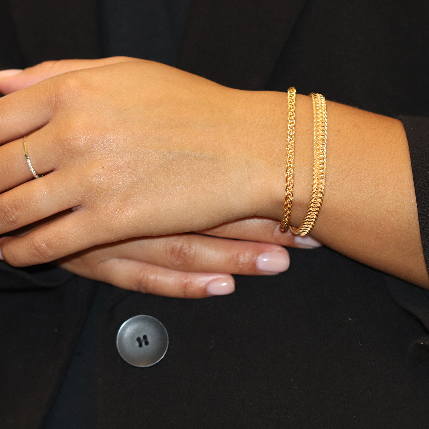 Zilver vergulde armband in vossenstaart schakel. De armband is voorzien van een karabijnsluiting
