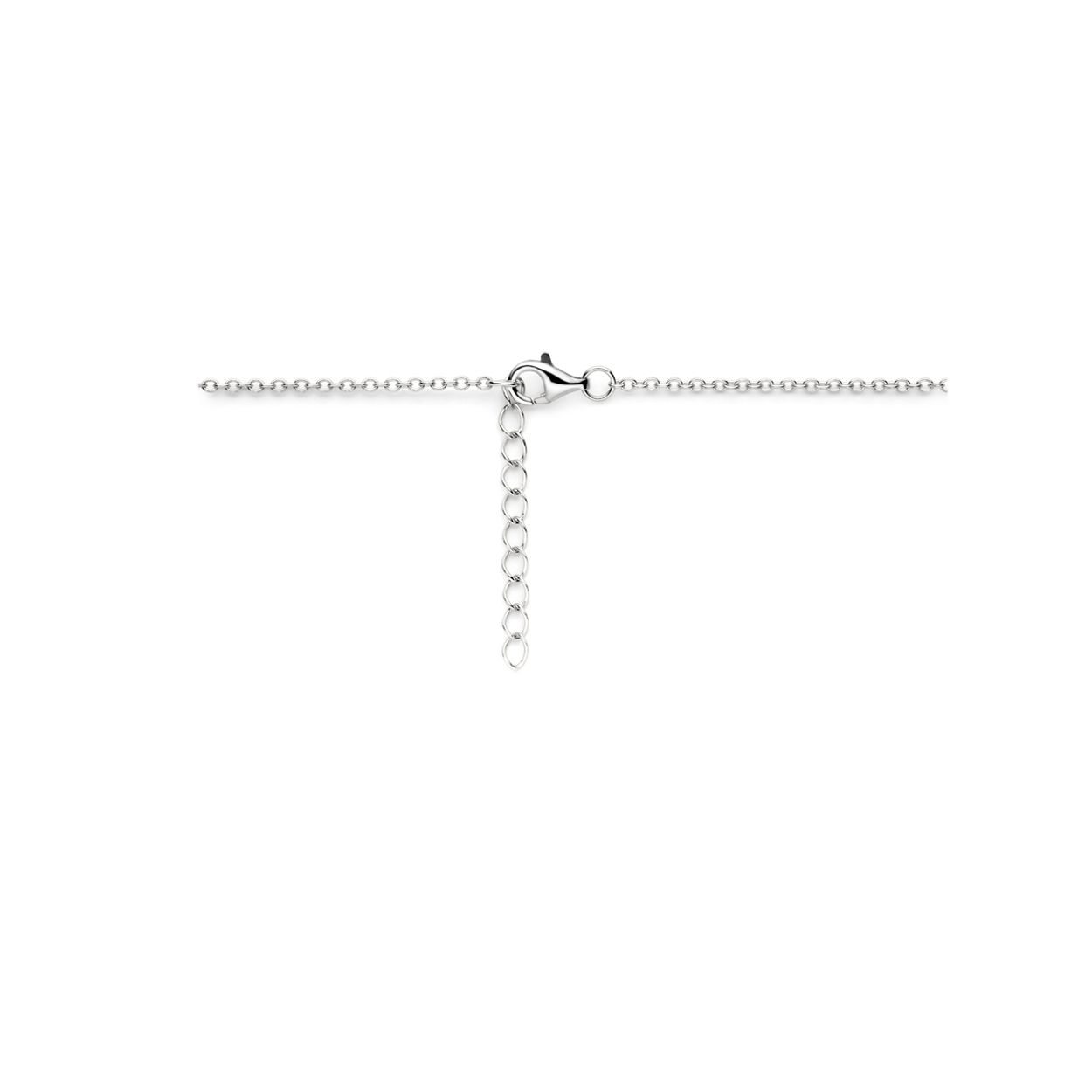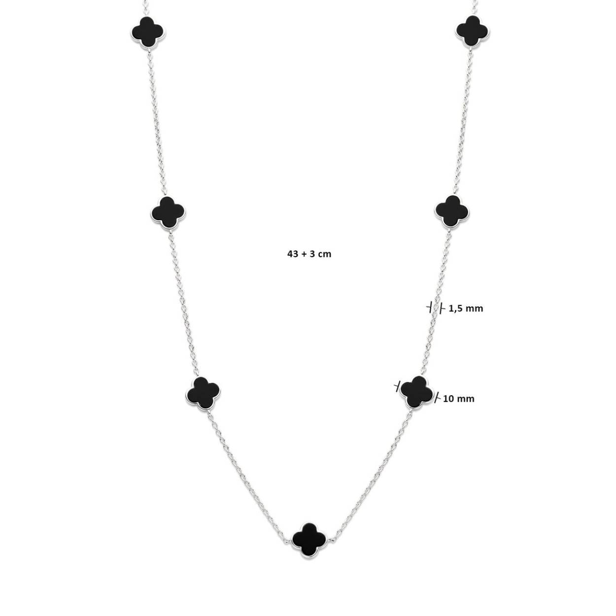 Gerodineerd 925 zilveren collier uitgevoerd met klavervier s met onyx. Het collier heeft een draaglengte van 43cm met 3cm extensie en schakelbreedte van 1.5mm.
