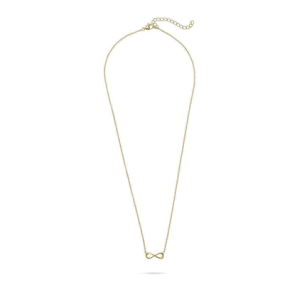Zilver geelgoud vergulde collier met in het midden het infinity-symbool. Het collier is 42cm met een 5cm verlengketting eraan.