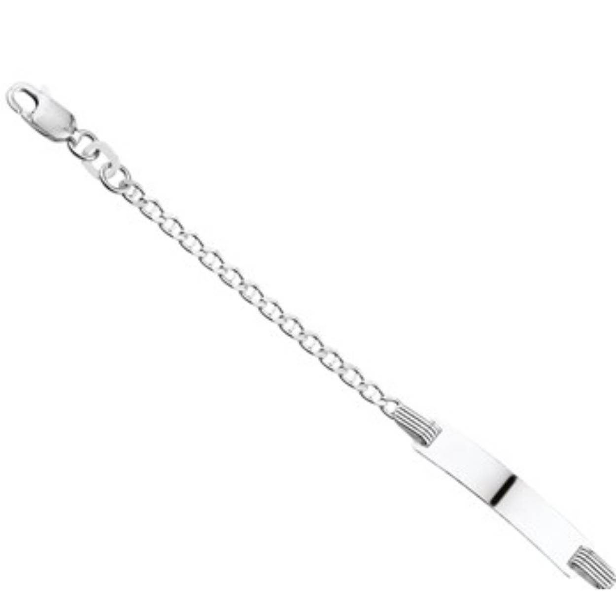 Zilveren graveerarmband, de lengte bedraagt 16cm met 2cm extensie. De breedte van de graveerplaat bedraagt 5mm.