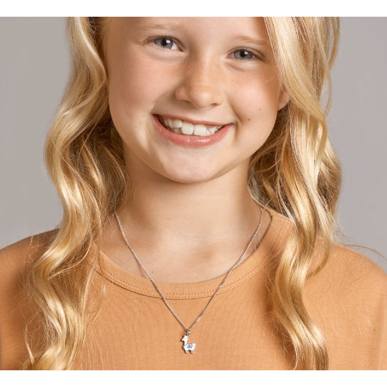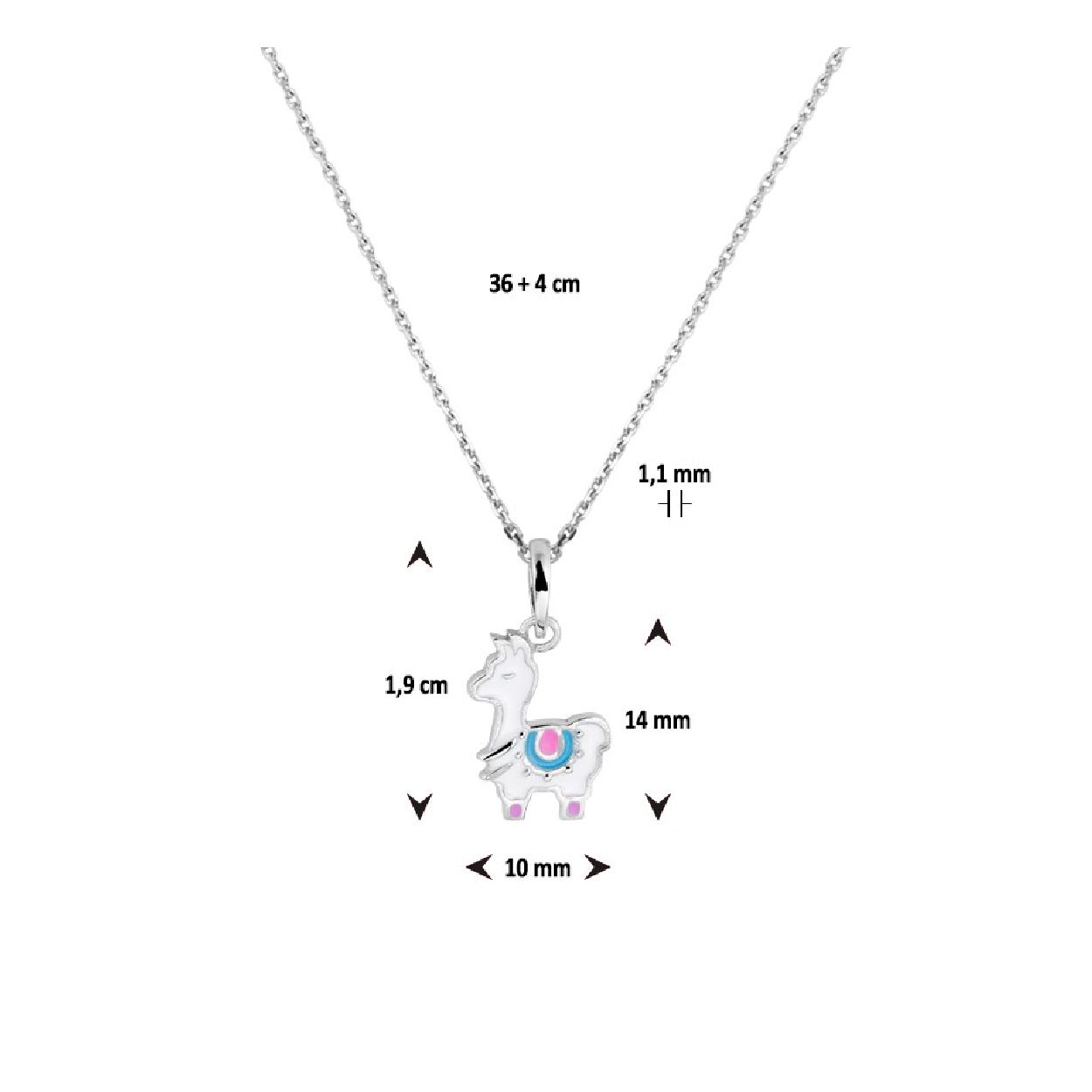 Schattig gerhodineerd zilveren collier met een alpaca hanger van 14x10mm. De lengte bedraagt 36cm met een 4cm extensie en de schakelbreedte is 1.1mm. Info: Gerhodineerd zilver is door de rhodiumlaag beter bestand tegen verkleuren en krassen.