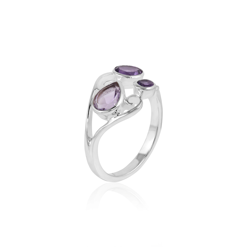 Zilveren ring met amethyst in verschillende slijpvormen