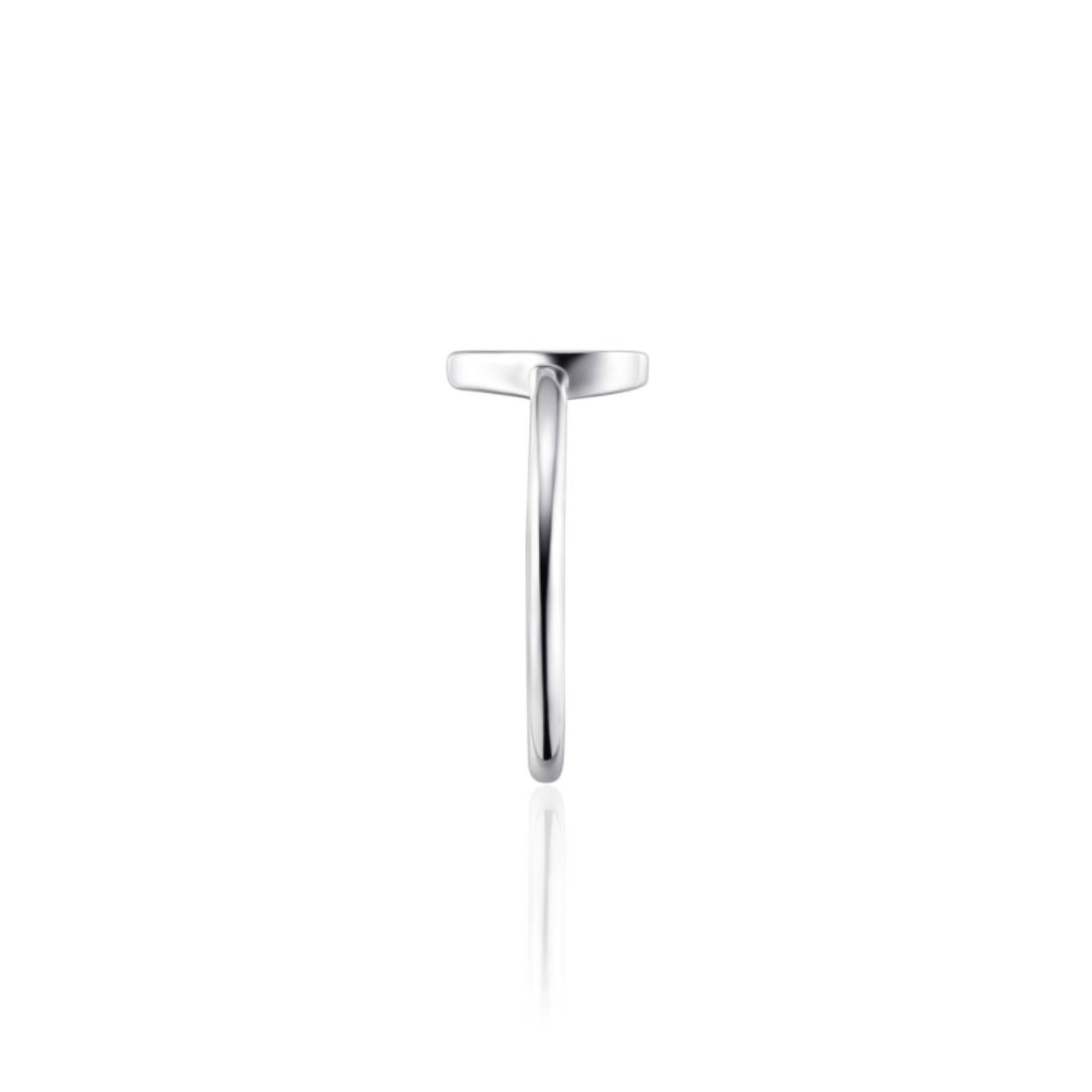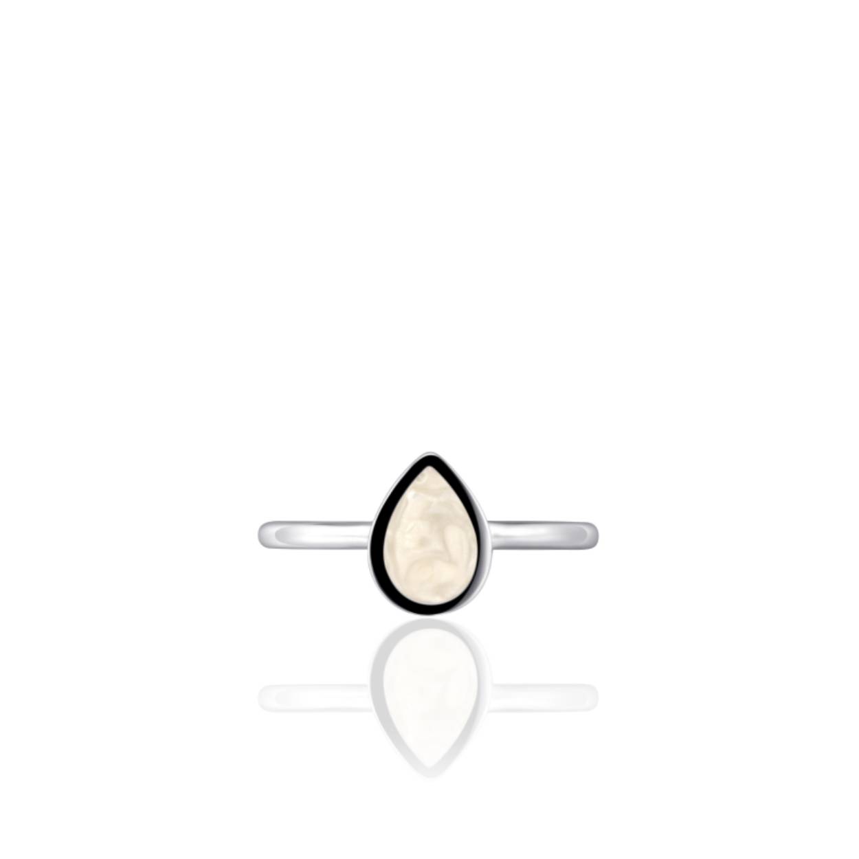 Zilver gerhodineerde ring met parelmoer in vorm van een druppel.