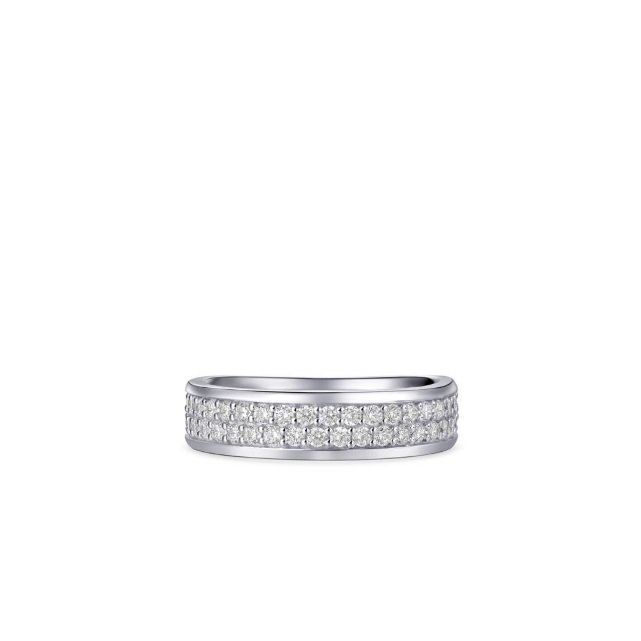 Zilver gerodineerde ring met twee rijen zirkonia.