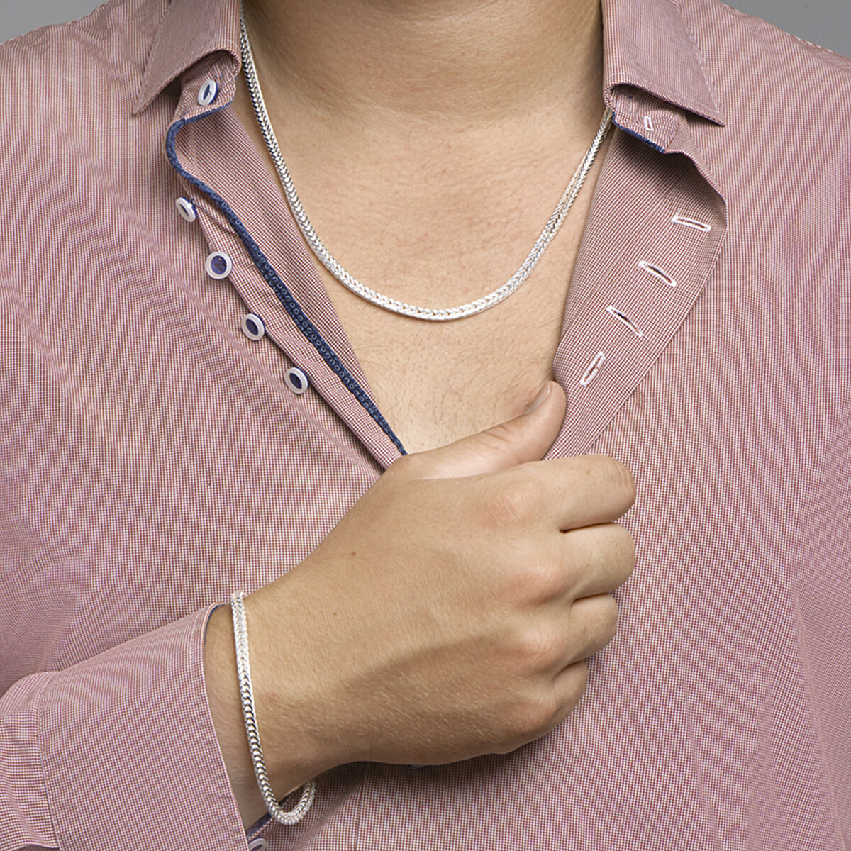 Sterling Zilveren vierkante vossestaart schakel met karabijnsluiting