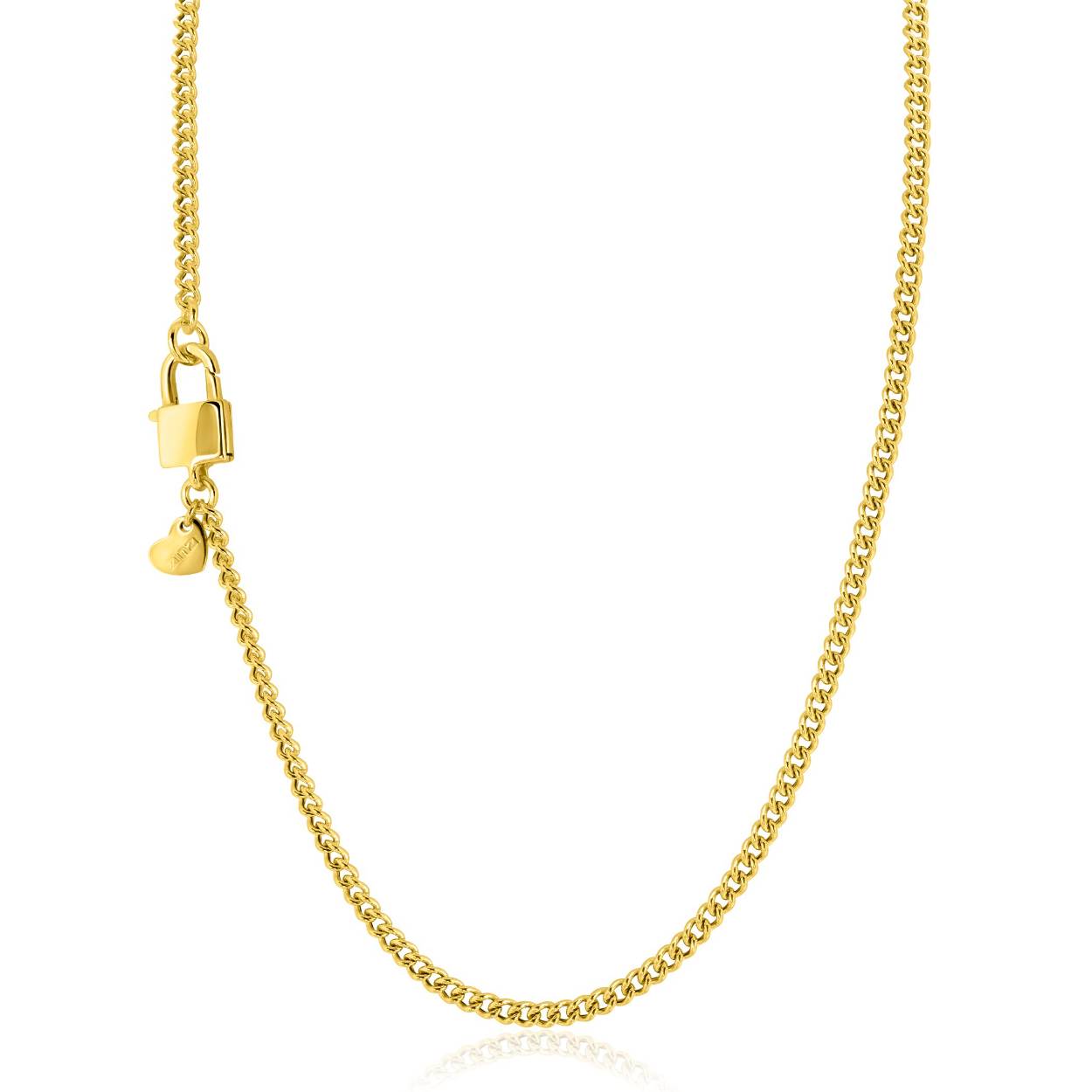 ZINZI gold plated zilveren gourmet ketting 3,8mm breed met trendy glimmend slotje als sluiting. Met herkenbaar Zinzi hartje bij de sluiting. De lengte van de ketting is 43cm. De ketting is vervaardigd van eerste gehalte zilver (925) en extra geelverguld.