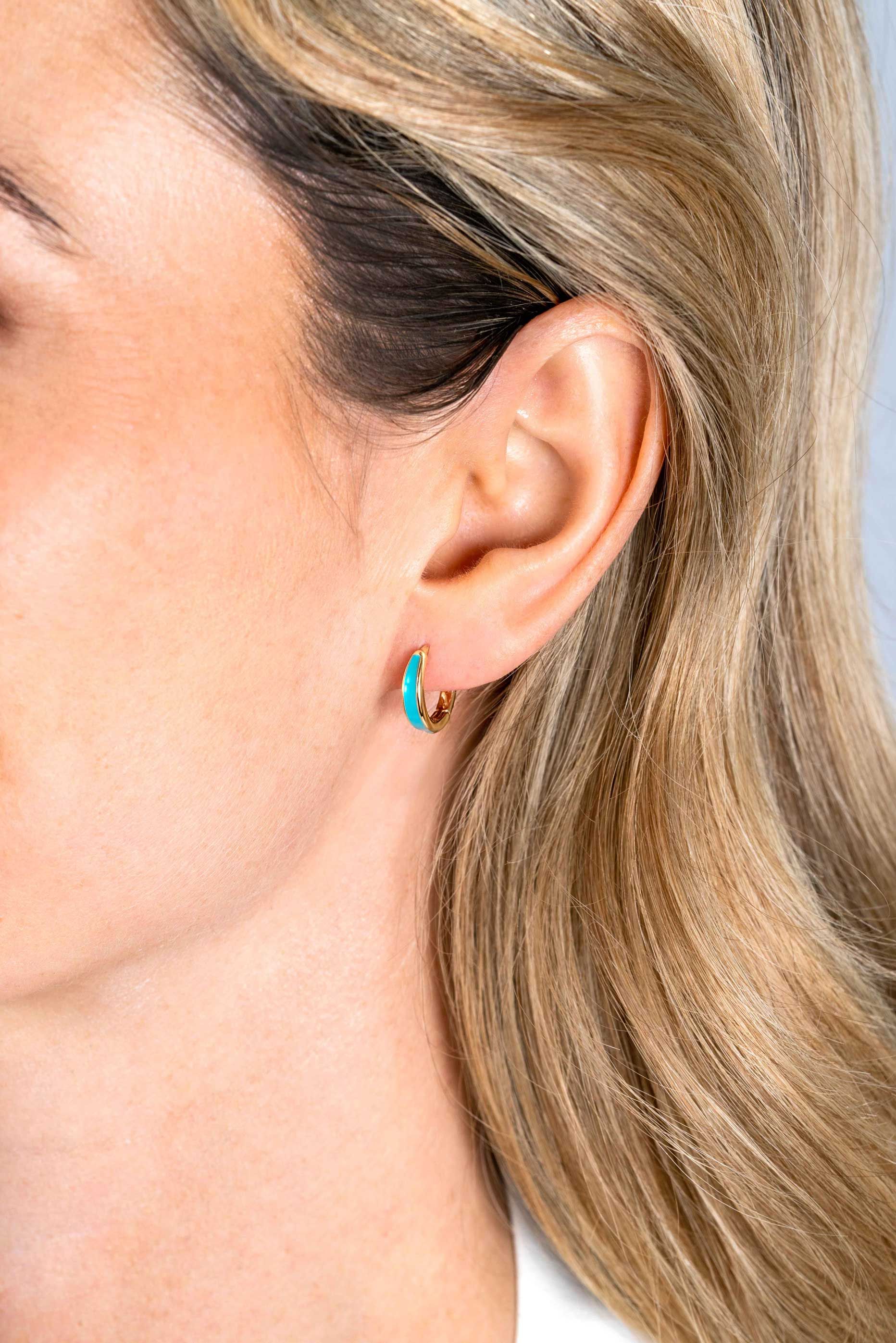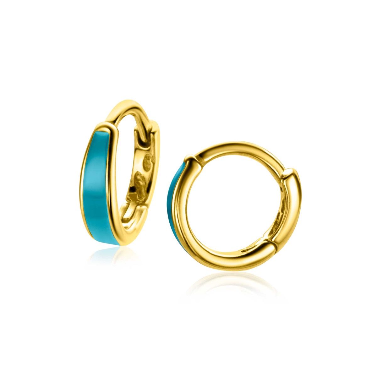 ZINZI gold plated zilveren oorringen (14x3,5mm) met trendy turquoise emaille ingelegd en luxe scharniersluiting. De oorringen geven kleur aan je outfit deze zomer. Deze oorringen zijn te combineren met al onze oorbedels. De oorsieraden zijn vervaardigd van eerste gehalte zilver (925) en voorzien van een extra 14K geel vergulding.