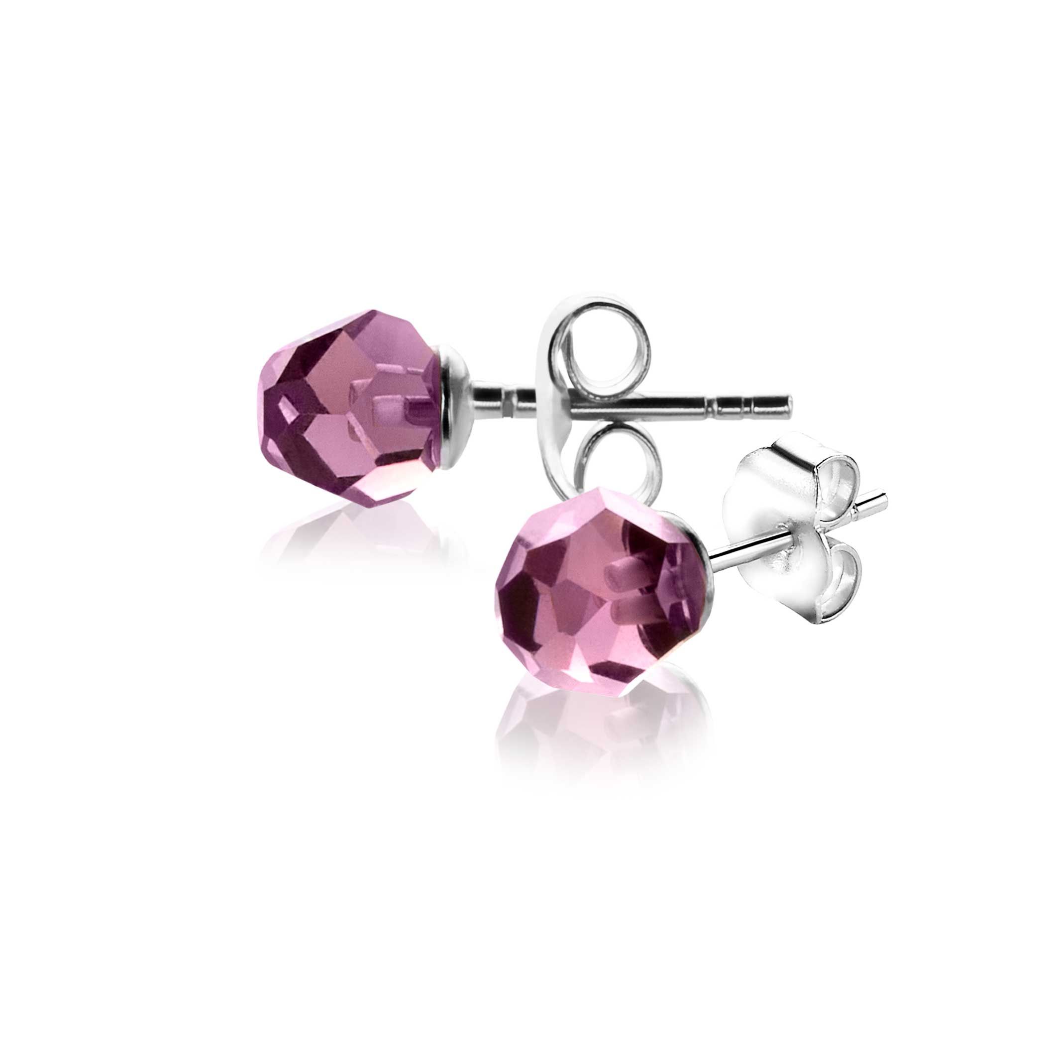 ZINZI zilveren oorknoppen met ronde paarse beads (6mm). Deze oorknoppen zijn vervaardigd van eerste gehalte zilver (925) en voorzien van een extra rodiumlaag.