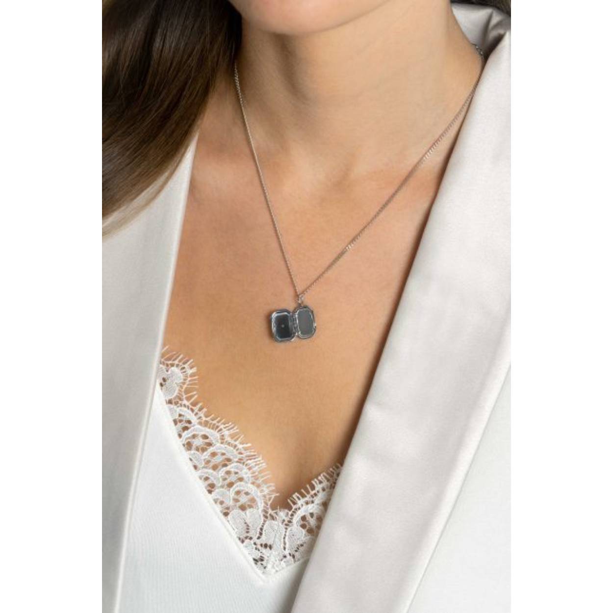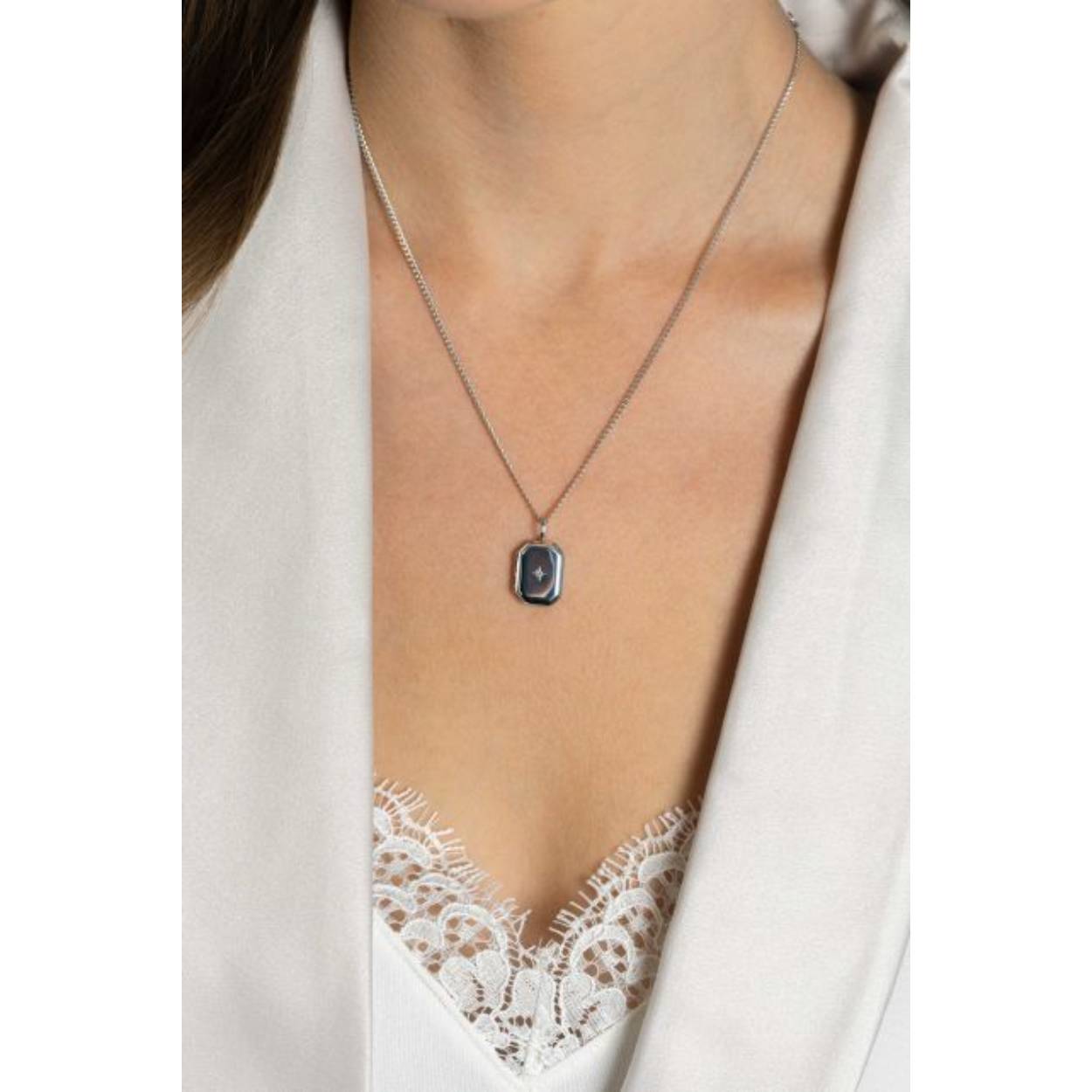 ZINZI zilveren medaillon rechthoek 22 x 12 mm glanzend bezet met een witte zirconia in ster-zetting. Leuk om een kleine foto in te bewaren. De hanger is vervaardigd van eerste gehalte zilver (925) en extra gerodineerd. De hanger is exclusief collier